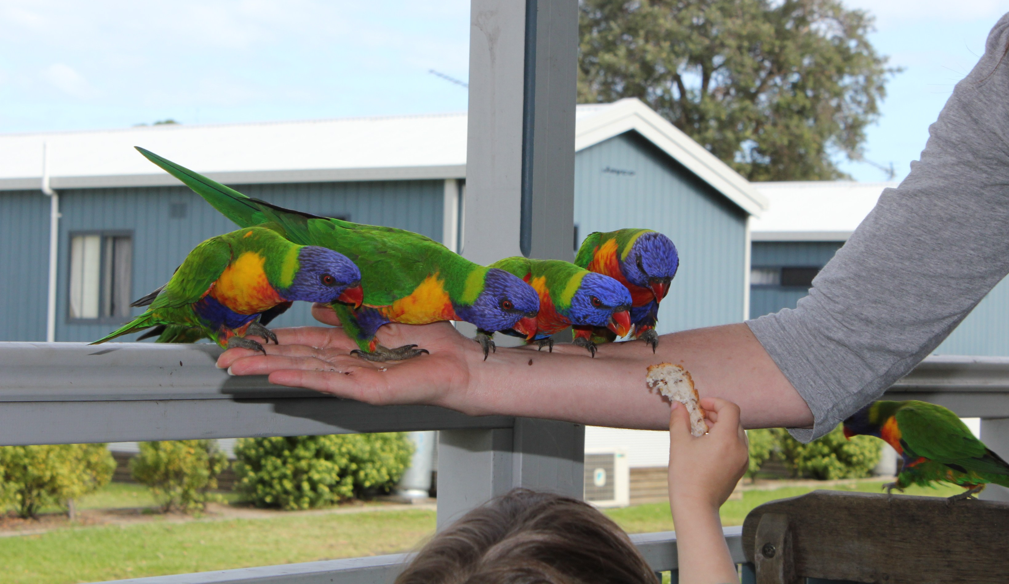 The park was filled with native Rainbow Lorikeets, beautiful and colourful species of parrot found in Australia. They are probably used to being fed by hand, so while they are very friendly they are also demanding their meal with no hesitation. After spending quite some time with the birds and making sure they are all well fed, we got off to the beach. The bay is stunning with turquoise water and quite a few resident dolphins, so there is always something to look forward to. Oh, apparently some “friendly” types of sharks also visit the area on occasion, so not to be mistaken with smiling dolphins…