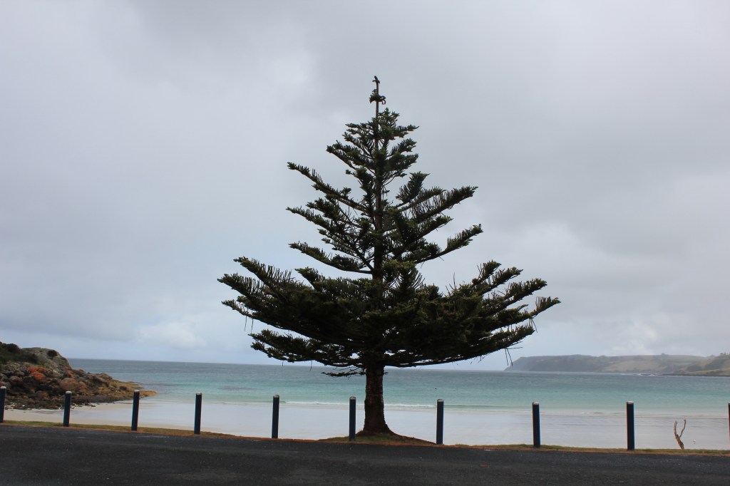 The morning was dedicated to run a few errands in the town of Burnie. Then we kept going west towards Wynyard which had a few interesting attractions. The wind nearly blew us off the lookout at Fossil Bluff, we made it to the lighthouse at Table Cape for more impressive views, and even a bit of rain did not stop us. But then, as the clouds disappeared and the sun came out, we arrived at a stunningly beautiful beach with white sand and turquoise water. With clouds coming and going, we experienced this special place in different shades and colours.